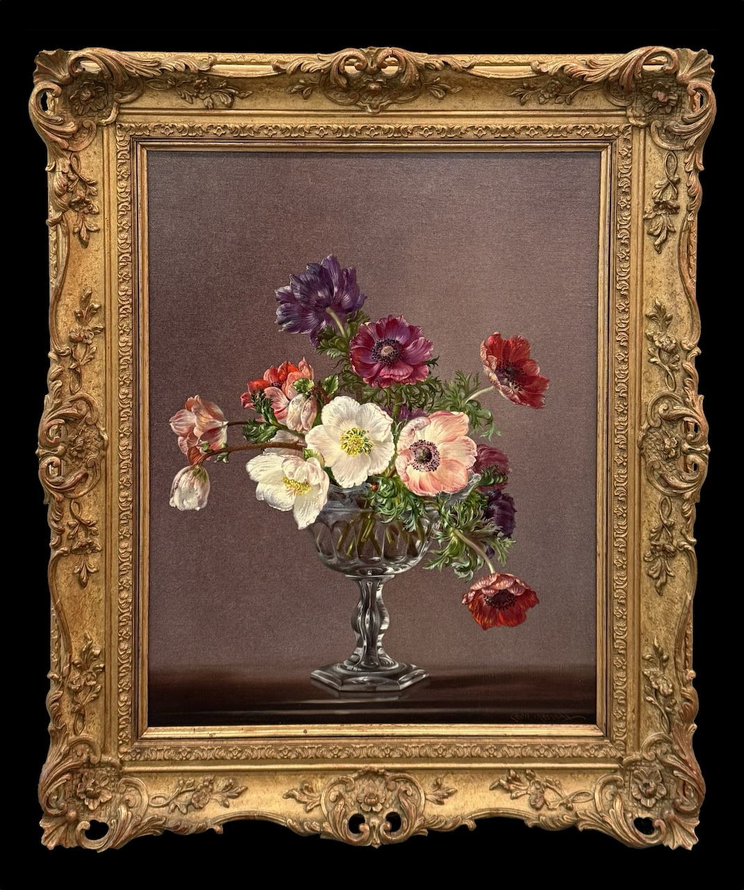 Born in Leyton, England Cecil Kennedy is best remembered for his minutely detailed depictions of flowers, additionally he also worked as a portraitist. His greatest works are admired for their exquisite detail and artful compositions, and many of these were produced during the 1960’s. His wife Winifred created the brilliant flower arrangements, usually in a vase from their collection of mid-eighteenth century Waterford vases, which further inspired his work.