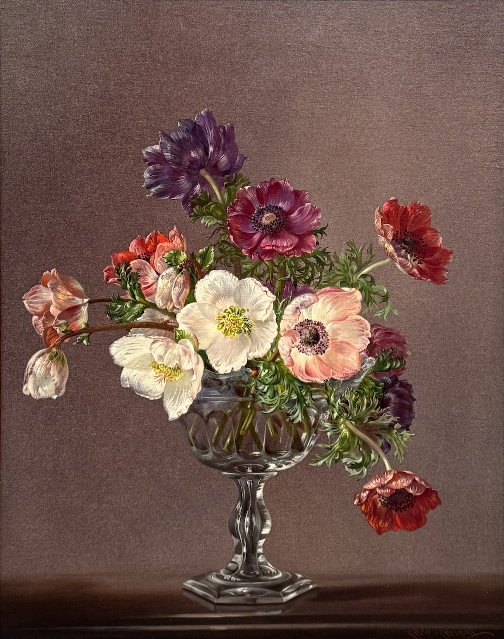 Cecil Kennedy had many important patrons. Queen Mary bought his work, as did the Duke of Windsor and the Astors. Queen Mary is quoted as saying “When I see Cecil Kennedy’s pictures I can smell the flowers and hear the hum of the bees”. Furthermore she noticed he had painted a ladybird on a flower stem. Thereafter all his paintings contained a ladybird.