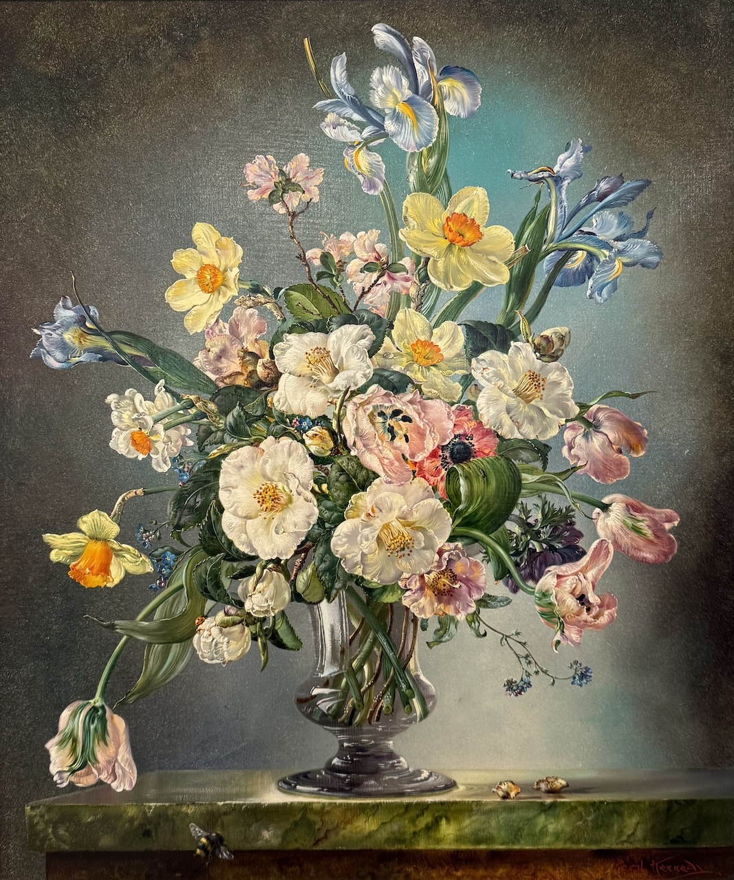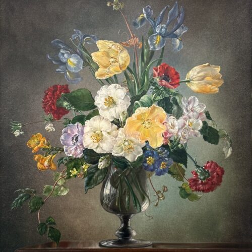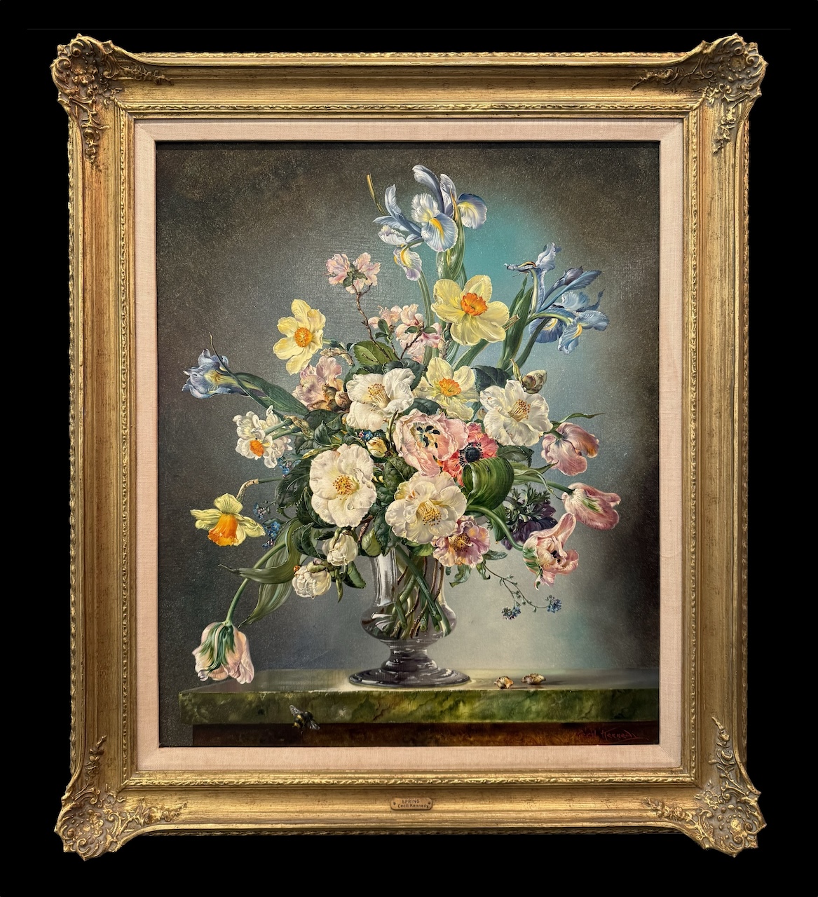 Born in Leyton, England Cecil Kennedy is best remembered for his minutely detailed depictions of flowers, additionally he also worked as a portraitist. His greatest works are admired for their exquisite detail and artful compositions, and many of these were produced during the 1960’s. His wife Winifred created the brilliant flower arrangements, usually in a vase from their collection of mid-eighteenth century Waterford vases, which further inspired his work.