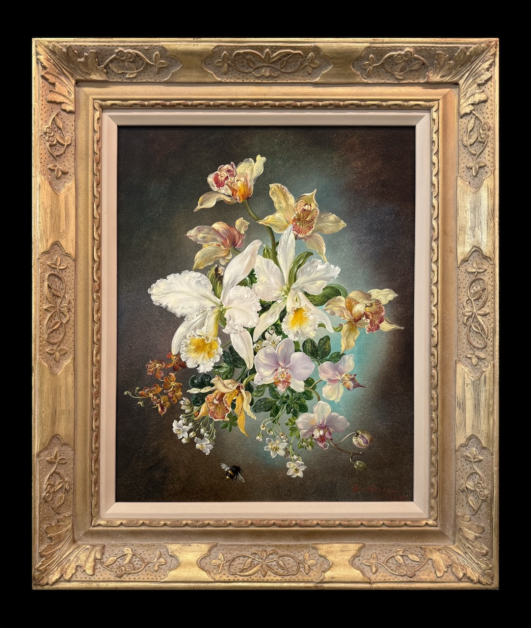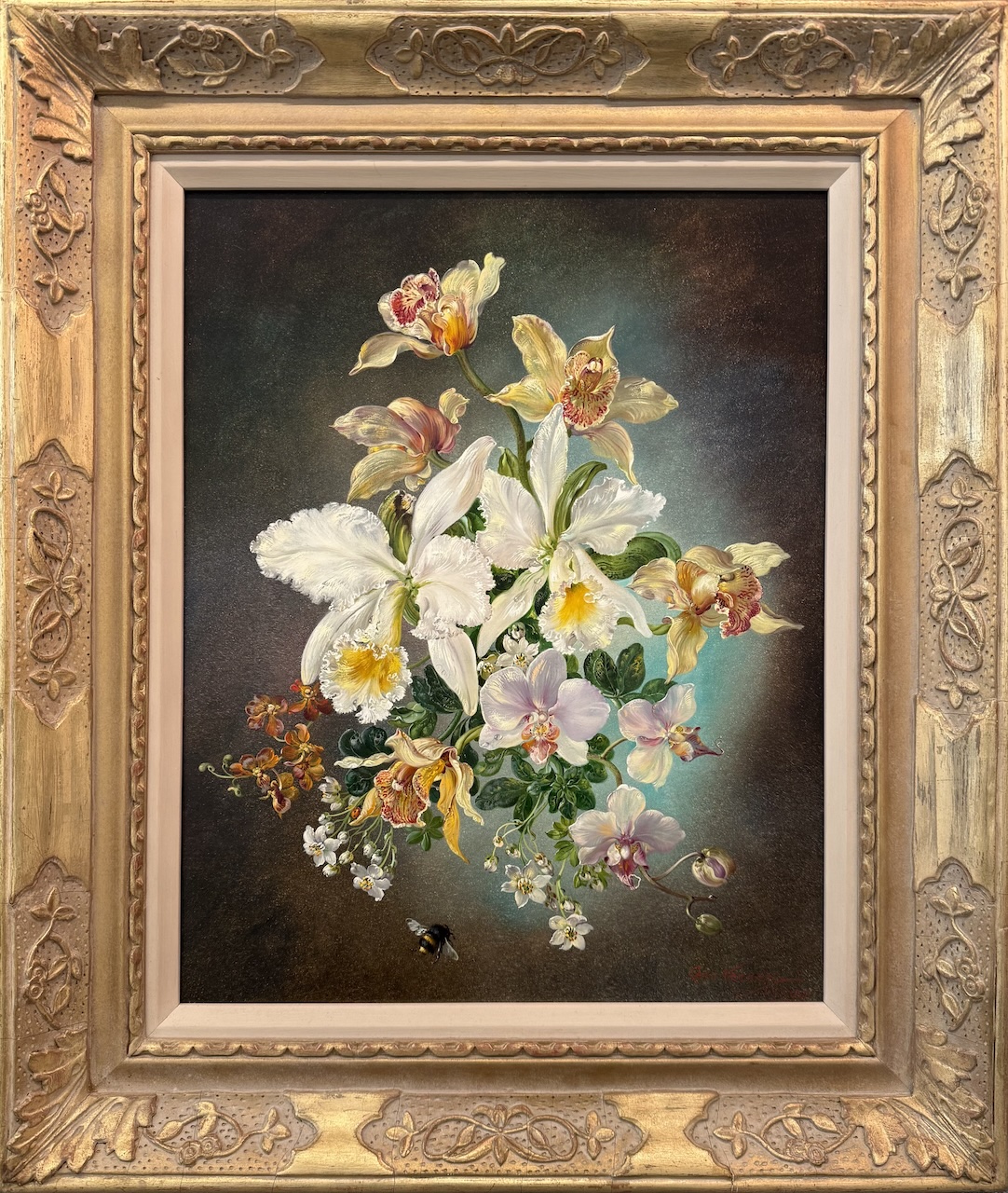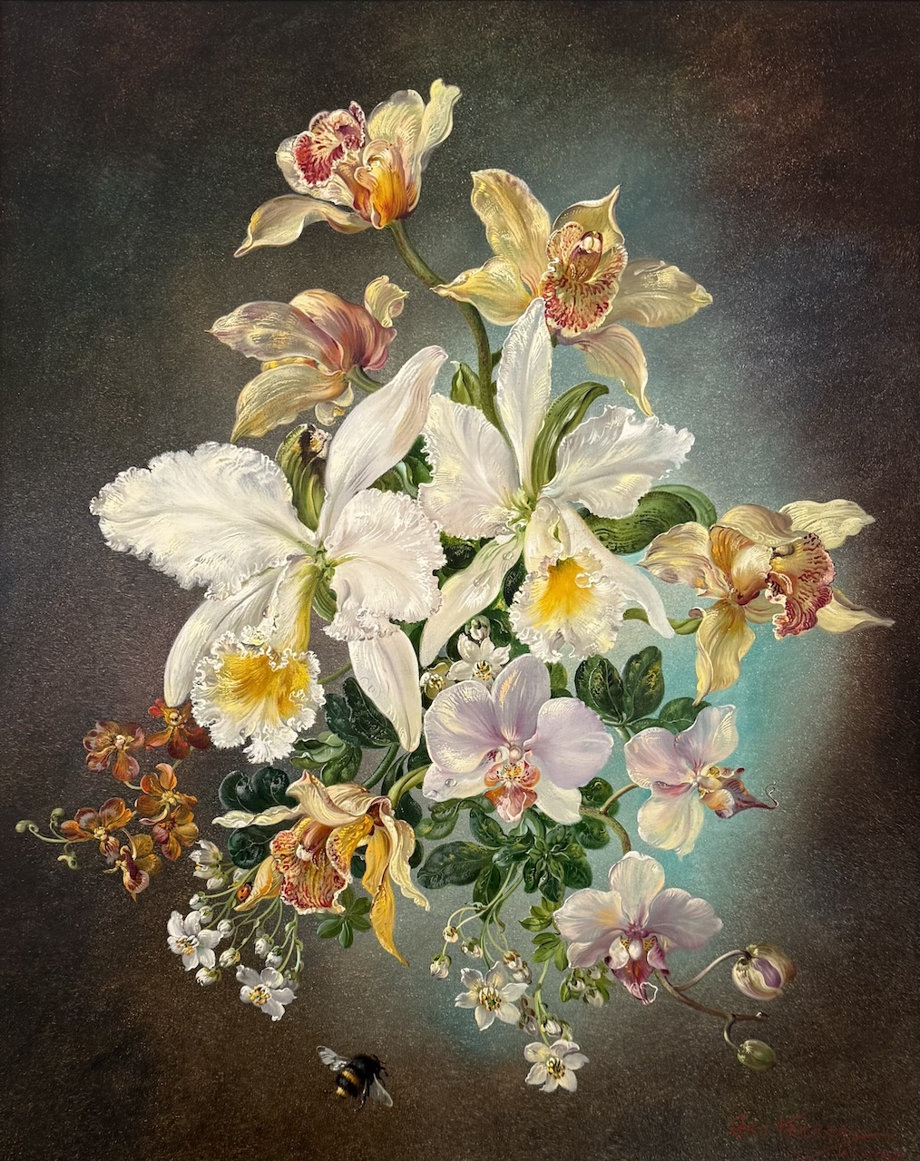 Still Life of Orchids with Bumblebee