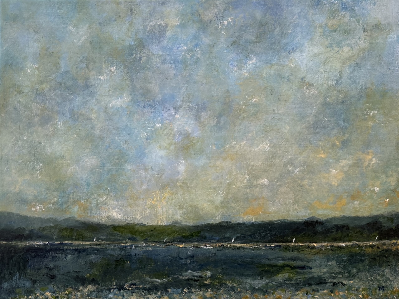 Working primarily in acrylic, Debbie Morris creates atmospheric landscape paintings that go beyond observation, exploring cloud formations, coastal textures, pebbles, rocks, shells and seaweed through colour and abstraction. Her work reflects an emotional connection to nature, solitude and remote environments.