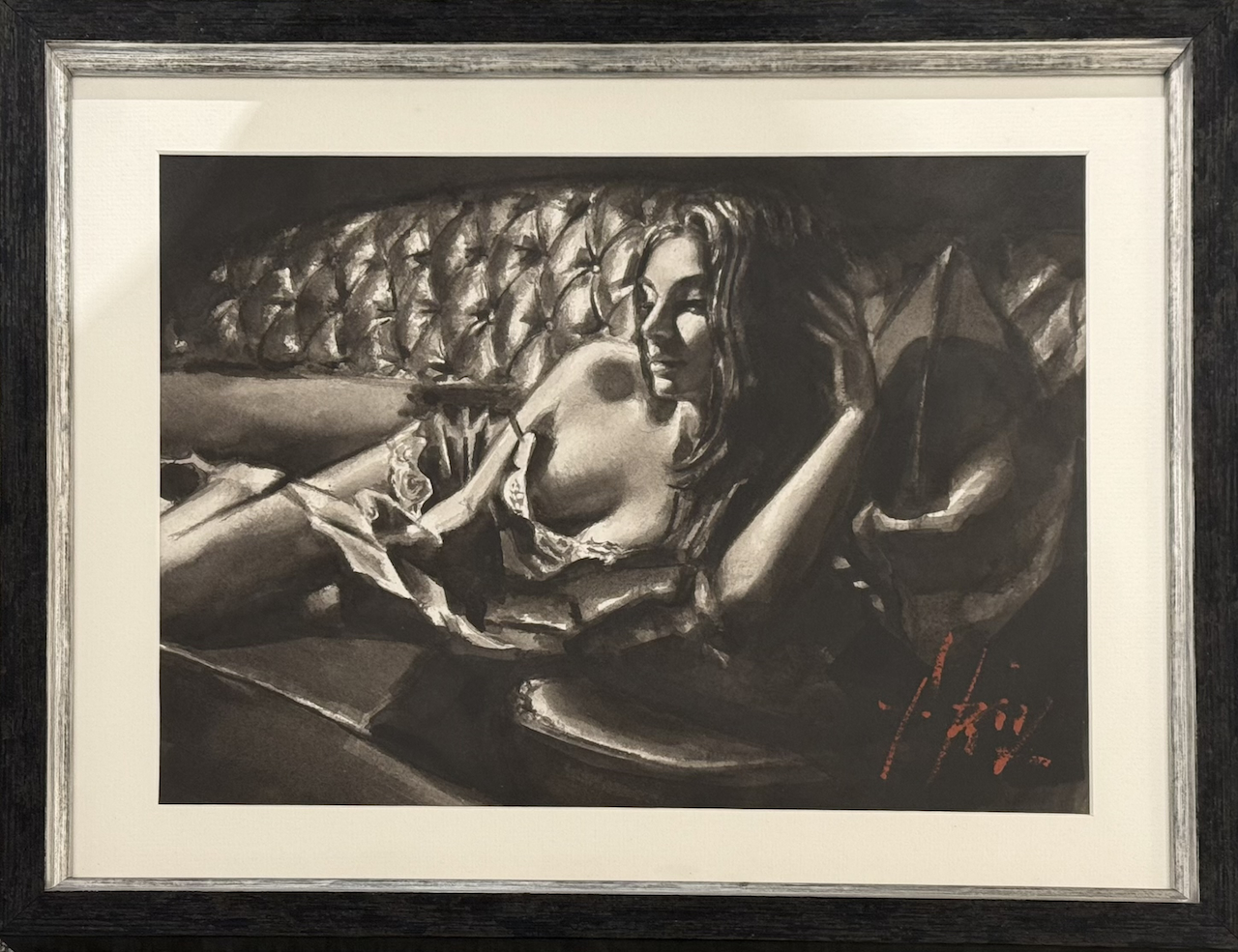 Fabian Pérez is a figurative painter. He was born in 1967 in Buenos Aires, Argentina. Pérez had a difficult up bringing. His father was a dangerous man, gambling their lively hood by running illegal bordellos and nightclubs; Often going to jail. Pérez remembers the stress of these times but also the strength from his mother. His mother was artistic and encouraged Pérez to develop his aptitude for art.
