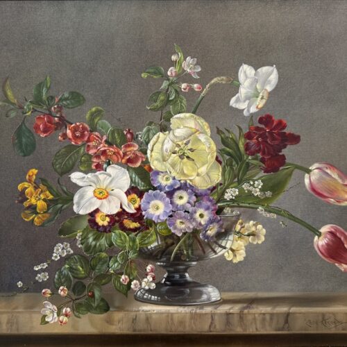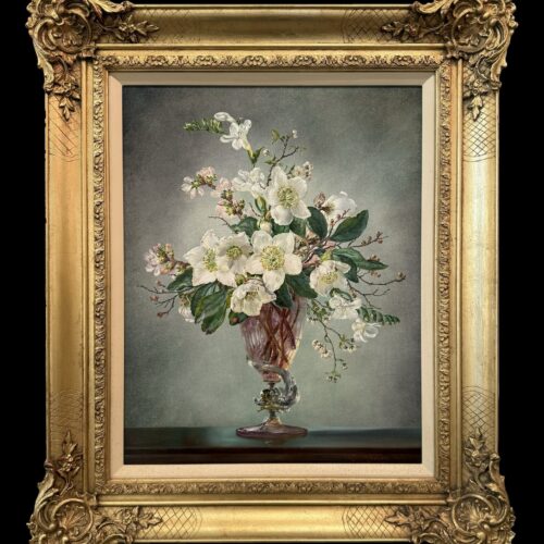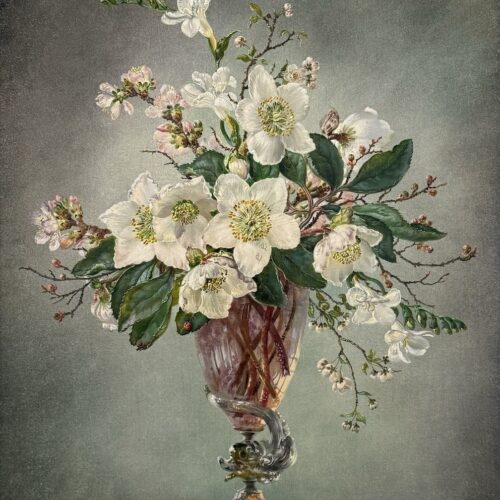 • Cecil Kennedy – Christmas Roses and Blossom in a Venetian glass