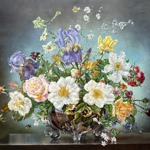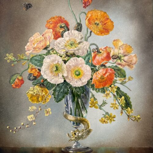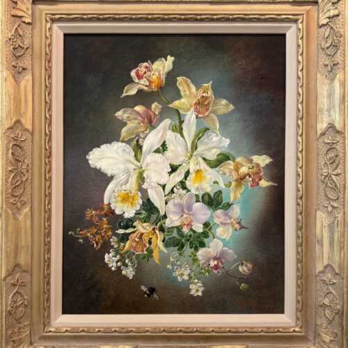 • Cecil Kennedy – Still Life of Orchids with Bumblebee